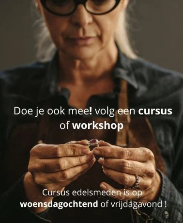 Wist je dat wij cursussen en workshops geven? Leer om helemaal zelf een ring te maken, of bewerk een sieraad naar eigen smaak tijdens onze workshops en cursussen. We mogen ze weer organiseren! Kijk hier welke leuke cursus of workshop je zou willen volgen.