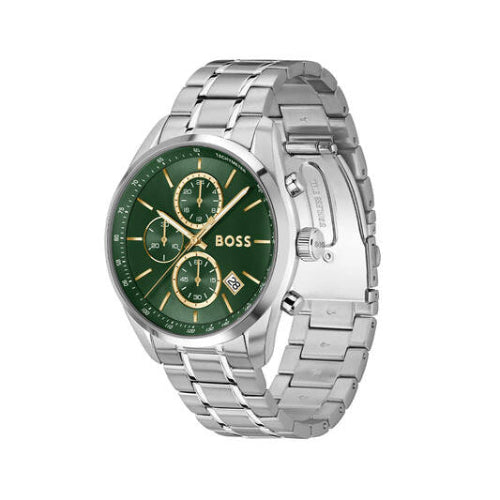 Wij verkopen verschillende BOSS horloges. Serie: Grand prix .Dit horloge beschikt over een quartz uurwerk met mineraal glas De band is gemaakt van staal. Het horloge is makkelijk te sluiten door een klapslot. Wij verpakken het in een luxe BOSS verpakking geleverd met garantie certificaat. En natuurlijk feestelijk ingepakt met milieu vriendelijk cadeau papier. U heeft twee jaar garantie. En 30 dagen (bedenk) tijd om het pakketje eventueel te retourneren. Valentine is officieel dealer van BOSS.