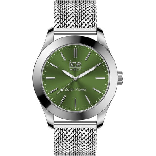 Deze Solar Ice-Watch steel voor heeft een mooie stalen band en een groenkleurige wijzerplaat met zilvere wijzers. Een modern horloge voor om je pols!Dit horloge wordt aangedreven op zonne-energie. Om het op te laden hoef je het horloge alleen maar tegen dag- of kunstlicht aan te houden!Het horloge wordt geleverd in een verpakking wat gemaakt is van gerecyclede PET-flessen. Je hebt 30 dagen bedenktijd en 2 jaar garantie.Valentine Juwelier is officieel dealer van Ice-Watch.