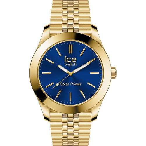 Deze Solar Ice-Watch steel voor heeft een mooie goudkleurige stalen band en blauwkleurige wijzerplaat met goudkleurige wijzers. Een modern horloge voor om je pols!Dit horloge wordt aangedreven op zonne-energie. Om het op te laden hoef je het horloge alleen maar tegen dag- of kunstlicht aan te houden!Het horloge wordt geleverd in een verpakking wat gemaakt is van gerecyclede PET-flessen. Je hebt 30 dagen bedenktijd en 2 jaar garantie.Valentine Juwelier is officieel dealer van Ice-Watch.