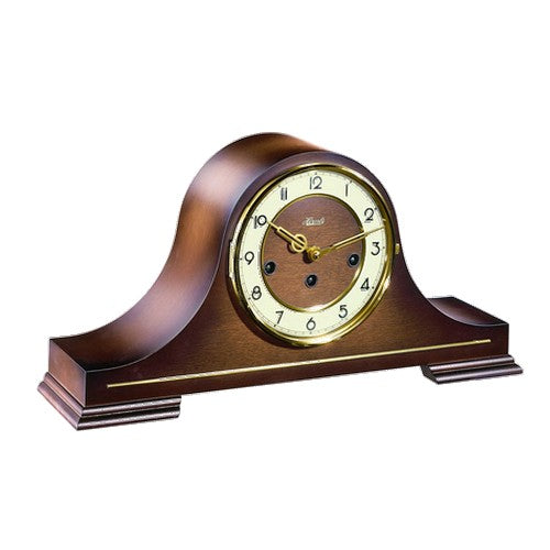 Jeka Westminster klok:Type: TafelklokGlassoort: Mineraal glasMateriaal rand: Gelakt eikenhoutKastvorm: RondKleurkast: Donker bruinAfmeting kast: 21.5 x 43.0 cm Wijzerplaat kleur: Créme en donker bruinWestminster slagwerkMechanischeGarantie: 3 jaar