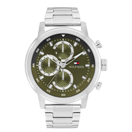 Wij verkopen verschillende Tommy Hilfiger horloges. Waaronder dit horloge uit de serie: Rocky Dit horloge beschikt over een quartz uurwerk met mineraal glas. De band is gemaakt van staal. Het horloge is makkelijk te sluiten door een veiligheid vouwsluiting met drukker. Wij verpakken het in een luxe Tommy Hilfiger verpakking geleverd met garantie certificaat. En natuurlijk feestelijk ingepakt met milieu vriendelijk cadeau papier. U heeft twee jaar garantie. En 30 dagen (bedenk) tijd om het pakketje eventueel te retourneren. Valentine is officieel dealer van Tommy Hilfiger.