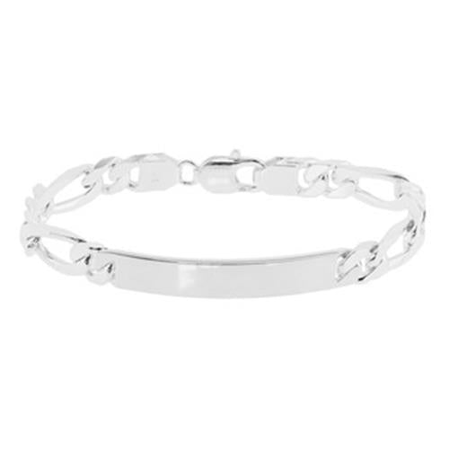 Valentine Jewellery "Figaro" graveerarmband:Materiaal: Zilver gerhodineerdDoelgroep: Heren Lengte: 20 cm Plaat breedte: 8.0 mm Schakel: FigaroSluiting: Lange karabijnhaakSoort: Graveerarmband Afwerking: Gepolijst