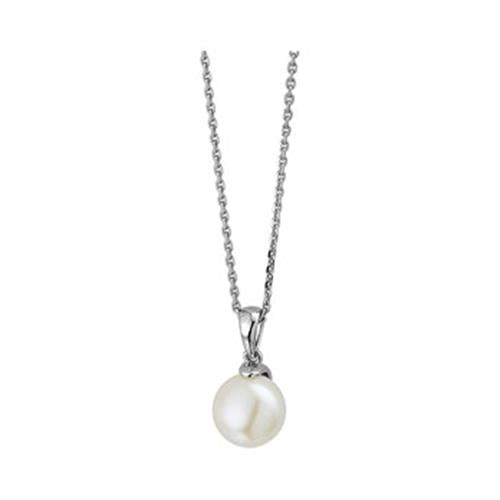 Valentine Jewellery "Anker" collier met parel hanger:Matreiaal: Zilver gerhodineerdParelsoort: Zoetwater parel witParelmaat: 7.5 mm Doelgroep: DamesLengte: 410.0 + 40.0 mm Dikte: 1.3 mm Vorm: RondSchakel: AnkerSoort: Collier compleetAfwerking: Gepolijst