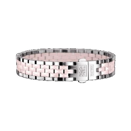 Ceramic Braclet Row Square 26 link-8.00 Pink Ceramic Kast: 316L roestvrij staal en roze keramiek Breedte: 14 mm Vorm kraal: vierkantLengte: 20 cm Armband is op maat te maken Valentine is officieel dealer van Icelink