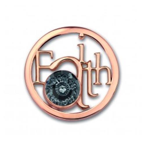 Mi Moneda Stainless Steel roségoud vergulde open munt met het woord "Faith" met in de A een smokey zwarte Swarovski kristal. Maat L (33mm)Omdat Mi Moneda niet meer bestaat kunnen wij geen producten meer nabestellen. Op = op!Valentine is officieel dealer van Mi Moneda.