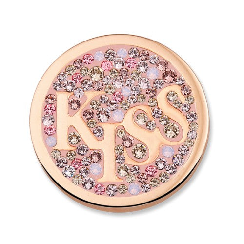 Kiss Light Pink Stainless Steel Disc With Swarovski CrystalsGrootte: M (Medium)