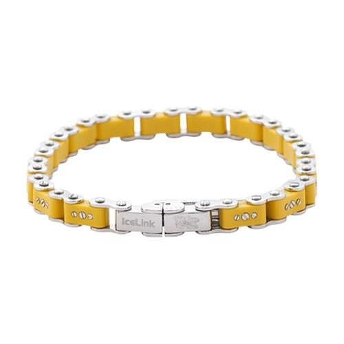 Bicycle Braclet Small Size 15 link-7.25 inches Stainless Steel an Yellow Materiaal: Roestvrij staal en geel polyurethaanBreedte: 6 mmLengte: 16 cm