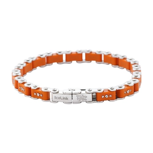 Bicycle Braclet Small Size 15 link Inches stailnless SteelMateriaal: Roestvrij staal en oranje polyurethaanBreedte: 6 mmLengte: 16 cm