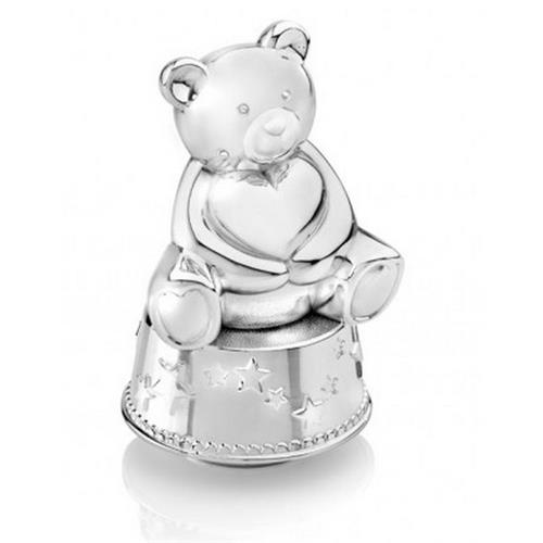De Zilverstad collectie heeft verschillende geschenk artikelen voor u. Waaronder deze muziekdoos beer Deze beer met hart is een spaarpot en muziekdoos in één. De beer draait rond op de melodie van La Vie en Rose. De spaarpot/muziekdoos is in zilver kleur, poetsen is overbodig.De geschenk artikelen zijn het perfecte cadeau bij een geboorte van een meisje of een jongen. Natuurlijk pakken wij de kraamcadeaus feestelijk in met milieu vriendelijk cadeau papier. U heeft twee jaar garantie. En 30 dagen (bedenk) tijd op het pakketje eventueel te retourneren.Valentine is officiële dealer van Zilverstad.