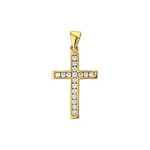 Hanger kruis zirkoniaArtikelnummer: 40.09570Doelgroep: UnisexMetaalsoort: GeelgoudMetaalgewicht: circa 2,13 gramBewerking: PoliVoorstelling: KruisSteensoort: Zirkonia rijSteenkleur: TransparantSlijpvorm: BriljantZetwijze: RailBreedte: 16mmHoogte: 26,5mmValentine jewellery